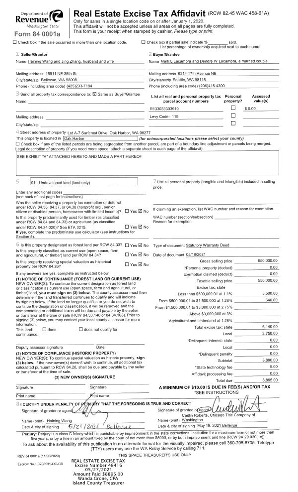 | 2 | 05/18/2021 | WD | Warranty Deed | WANG, HAINING | LACAMBRA, MARK L | | | $550,000.00 | 48416 | 4520337 |