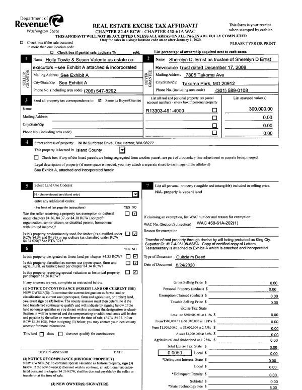| 2 | 08/24/2020 | QCD | Quit Claim Deed | KEESLING, MAXINE | ERNST TTEE, SHERELYN D | | | $0.00 | 44398 | 4494655 |