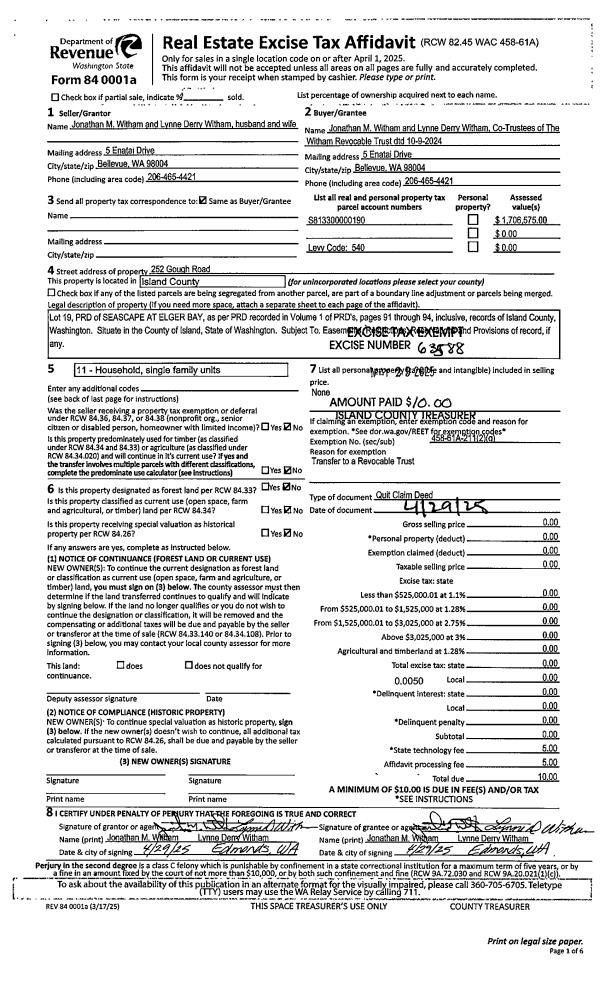 | 1 | 04/29/2025 | QCD | Quit Claim Deed | WITHAM, JONATHAN M | WITHAM TTEE, JONATHAN M | | | $0.00 | 63588 | 4586321 |