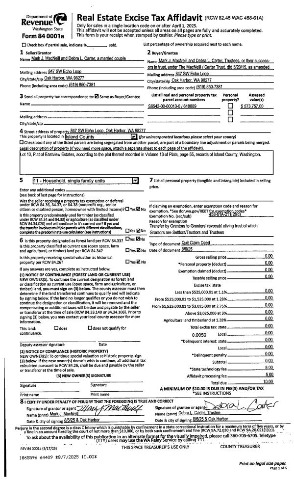 | Mailing Address: | 629 BUSH POINT RD FREELAND, WA 98249 | % Ownership: | 100.0000000000% |
