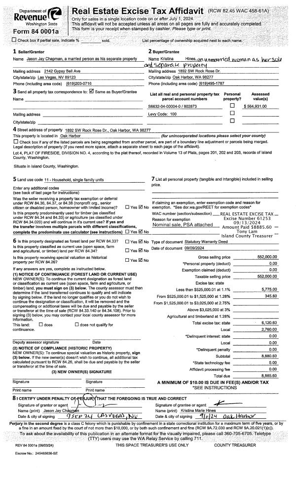 | Mailing Address: | 1892 SW ROCK ROSE DR OAK HARBOR, WA 98277 | % Ownership: | 100.0000000000% |