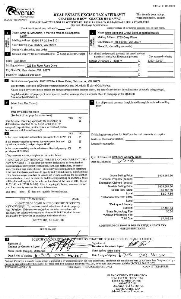 | Mailing Address: | GRETYL BAIRD 1922 SW ROCK ROSE DR OAK HARBOR, WA 98277 | % Ownership: | 100.0000000000% |