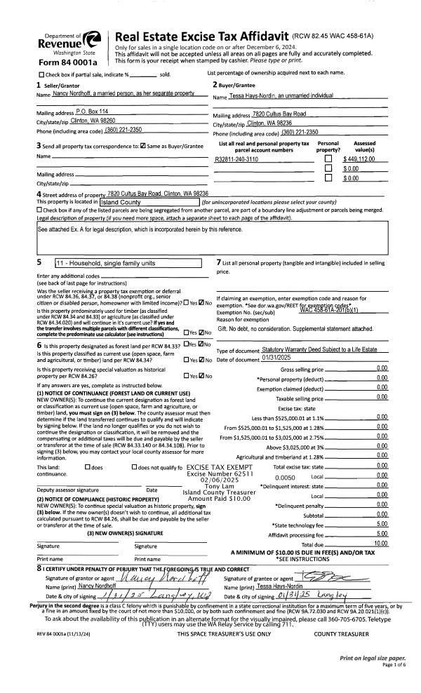 | Mailing Address: | 48 S SHERMAN RD COUPEVILLE, WA 98239-3301 | % Ownership: | 100.0000000000% |