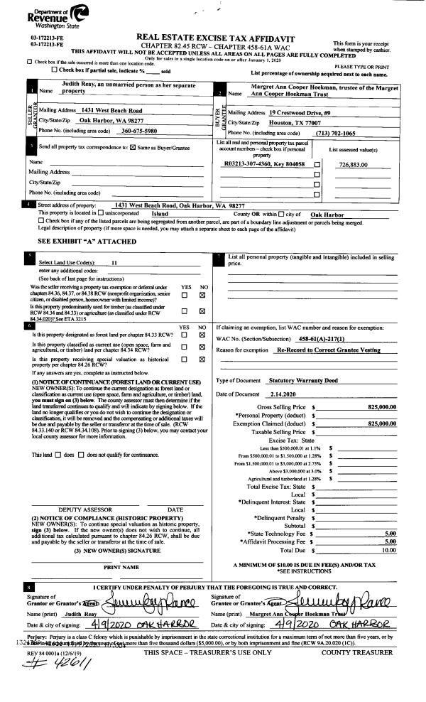 | 2 | 02/14/2020 | WD | Warranty Deed | REAY, DONALD T | HOEKMAN TTEE, MARGRET ANN COOPER | | | $0.00 | 42611 | 4484512 |