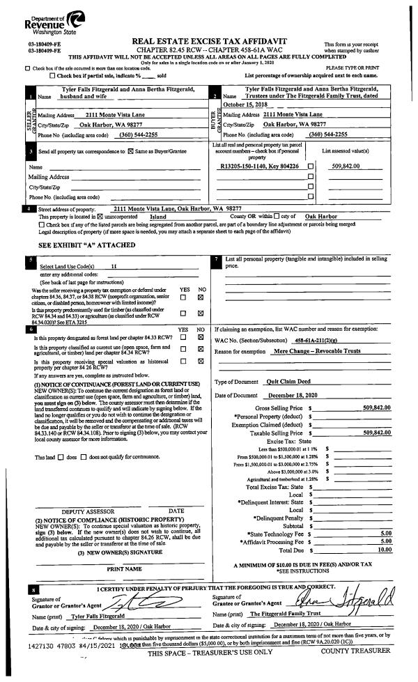 | 1 | 12/18/2020 | QCD | Quit Claim Deed | FITZGERALD, TYLER FALLS | FITZGERALD TTEE, TYLER FALLS | | | $0.00 | 47803 | 4516608 |