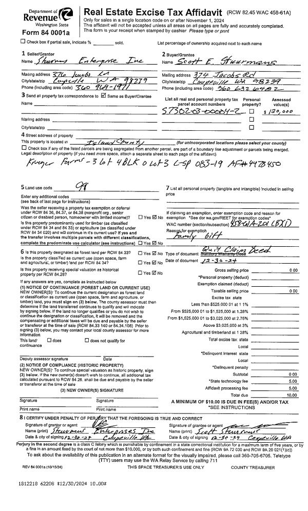 | Mailing Address: | PO BOX 923 COUPEVILLE, WA 98239 | % Ownership: | 100.0000000000% |
