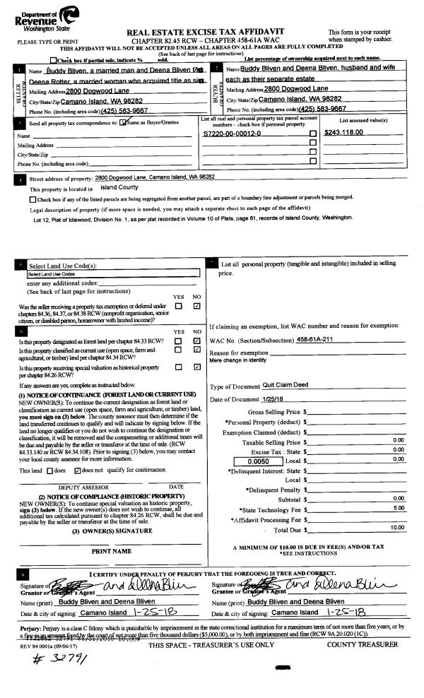 | 2 | 02/16/2005 | WD | Warranty Deed | WHIDBEY GREEN I & II LLC, | RUDOLPH TRUSTEE, HAROLD R | | | $302,919.00 | 50863 | 4127293 |