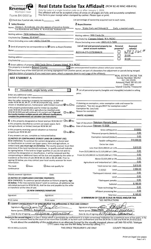 | 1 | 02/13/2026 | WD | Warranty Deed | KOWALCZUK, JEROME L | EARLY, WALTER & DEBORAH B | | | $510,000.00 | 66242 | 4597021 |