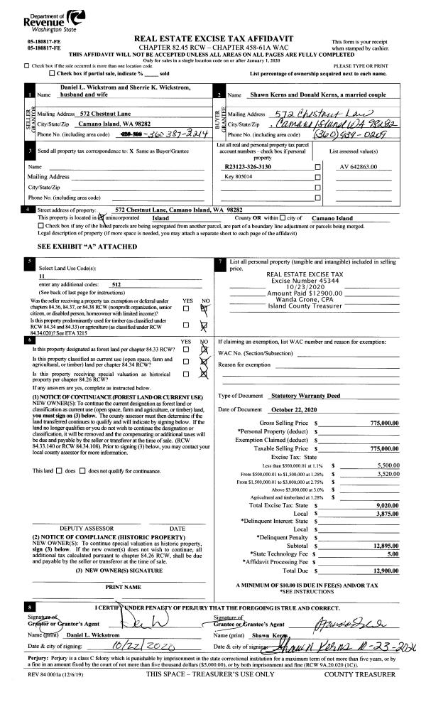 | 1 | 10/22/2020 | WD | Warranty Deed | WICKSTROM, DANIEL L | KERNS, SHAWN | | | $775,000.00 | 45344 | 4500209 |