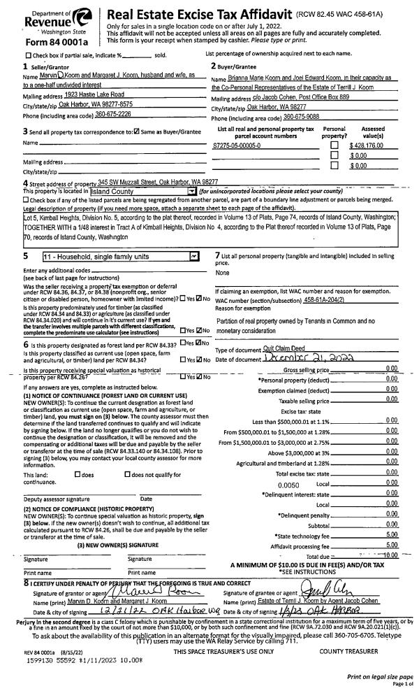 | Mailing Address: | 4403 TERRACE DR OAK HARBOR, WA 98277-9720 | % Ownership: | 100.0000000000% |