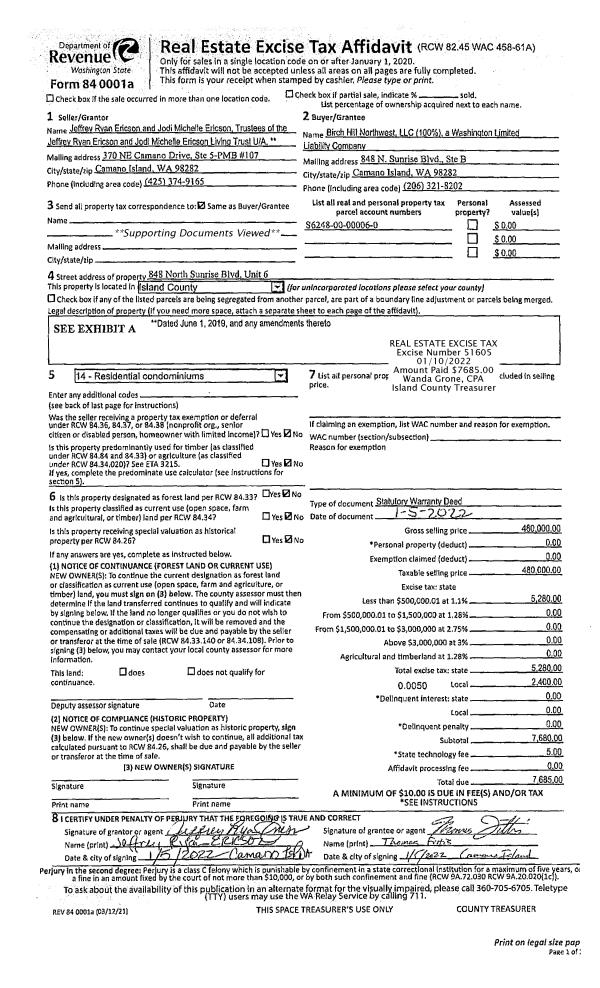 | 1 | 01/05/2022 | WD | Warranty Deed | ERICSON TTEE, JEFF | BIRCH HILL NORTHWEST LLC | | | $480,000.00 | 51605 | 4537532 |