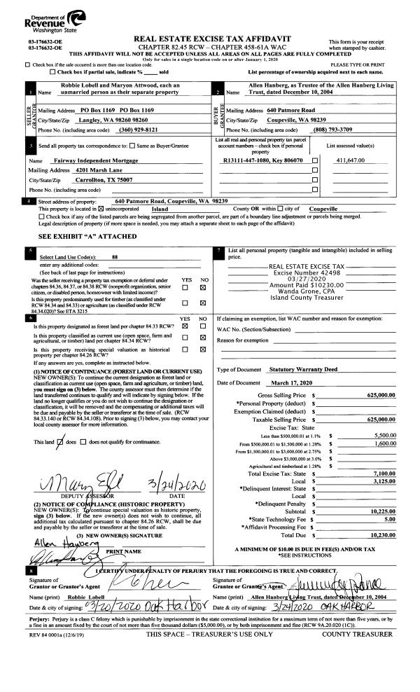 | 2 | 03/17/2020 | WD | Warranty Deed | LOBELL JTROS, ROBBIE | HANBERG TTEE, ALLEN | | | $625,000.00 | 42498 | 4483748 |