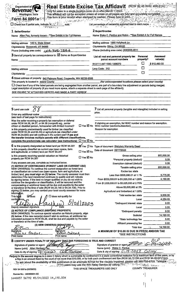 | 1 | 05/17/2023 | WD | Warranty Deed | HANBERG TTEE, ALLEN | PERDUE TTEE, BLAKE C | | | $850,000.00 | 56792 | 4560247 |