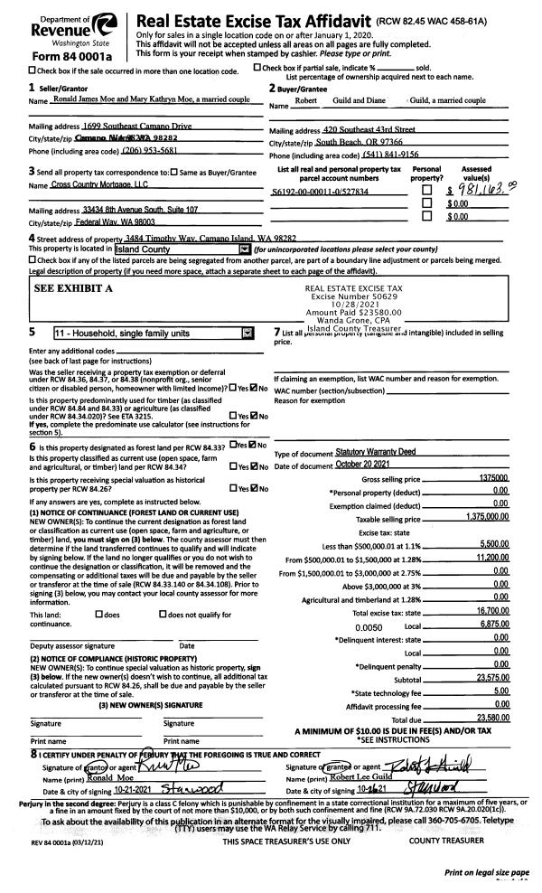 | Mailing Address: | 1890 SW SCENIC HEIGHTS ST, UNIT A1 OAK HARBOR, WA 98277 | % Ownership: | 100.0000000000% |