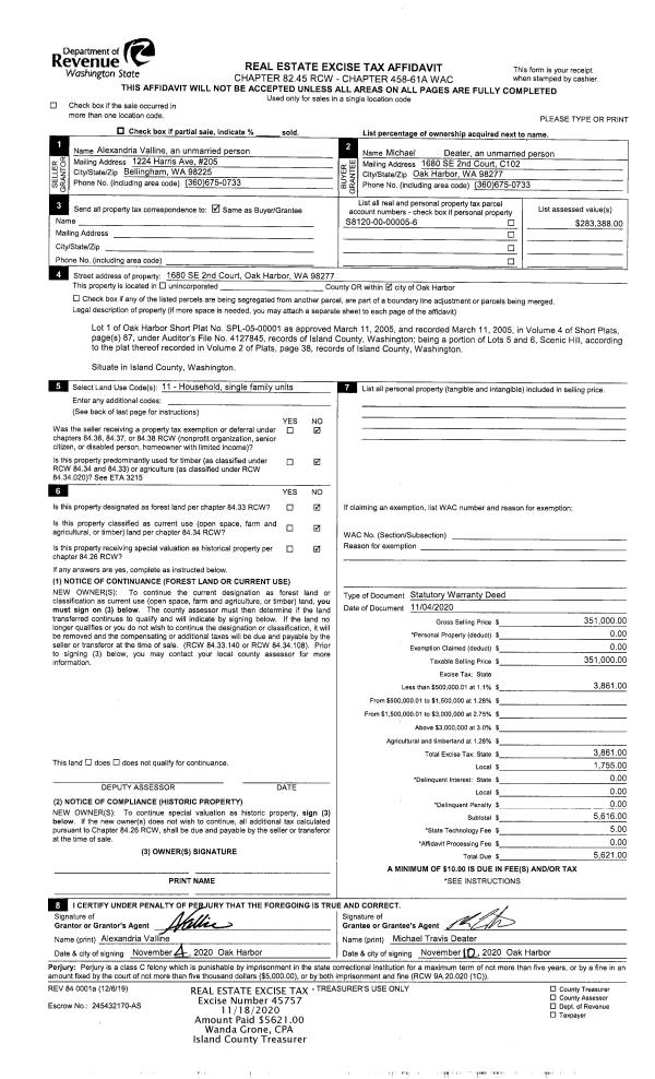 | 2 | 11/04/2020 | WD | Warranty Deed | VALLINE, ALEXANDRIA | DEATER, MICHAEL | | | $351,000.00 | 45757 | 4502717 |