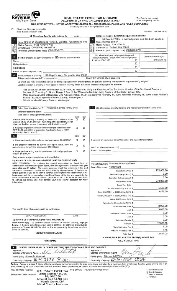 | 2 | 10/09/2020 | WD | Warranty Deed | WALSTAD, SHAWN D | WILDE, MICHAEL ARI | | | $770,000.00 | 45266 | 4499622 |