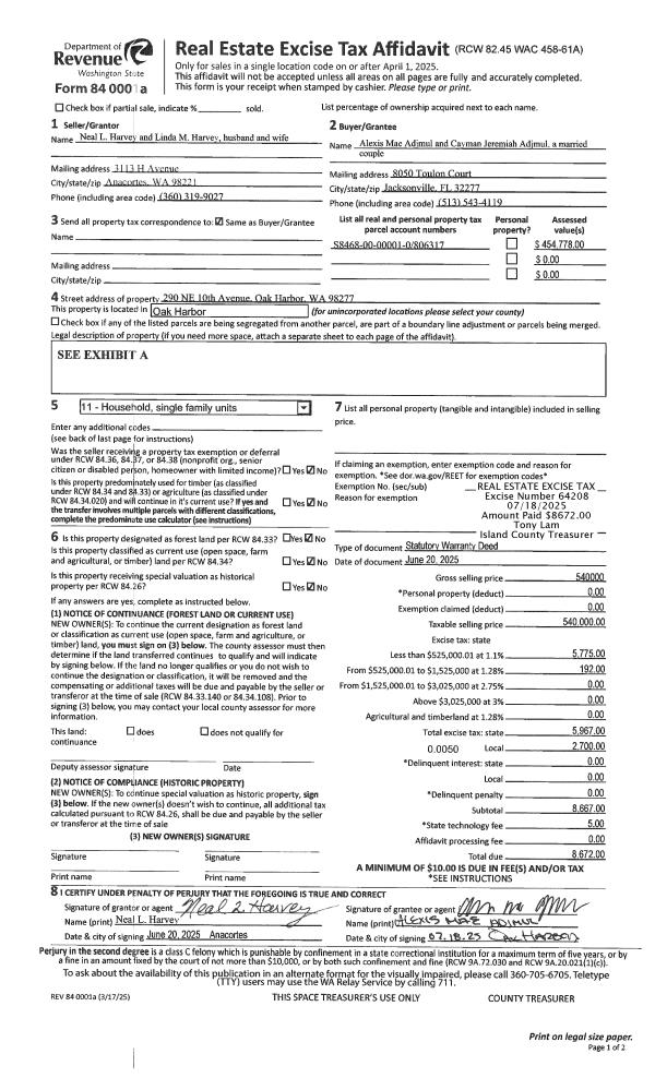 | 1 | 06/20/2025 | WD | Warranty Deed | HARVEY JTWROS, NEAL L | ADJMUL, ALEXIS MAE | | | $540,000.00 | 64208 | 4588500 |
