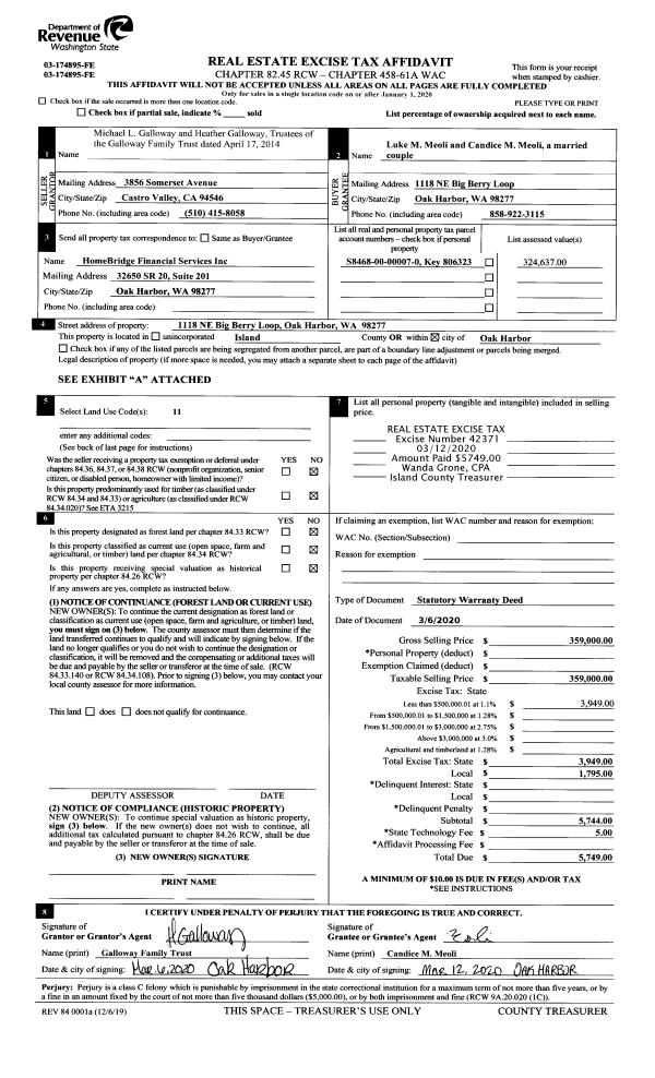 | 3 | 03/06/2020 | WD | Warranty Deed | GALLOWAY TRUSTEE, MICHAEL L | MEOLI, LUKE M | | | $359,000.00 | 42371 | 4482962 |