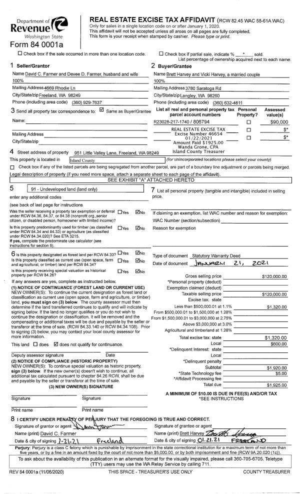 | 1 | 01/21/2021 | WD | Warranty Deed | FARMER, DAVID C | HARVEY, BRETT | | | $120,000.00 | 46654 | 4508793 |