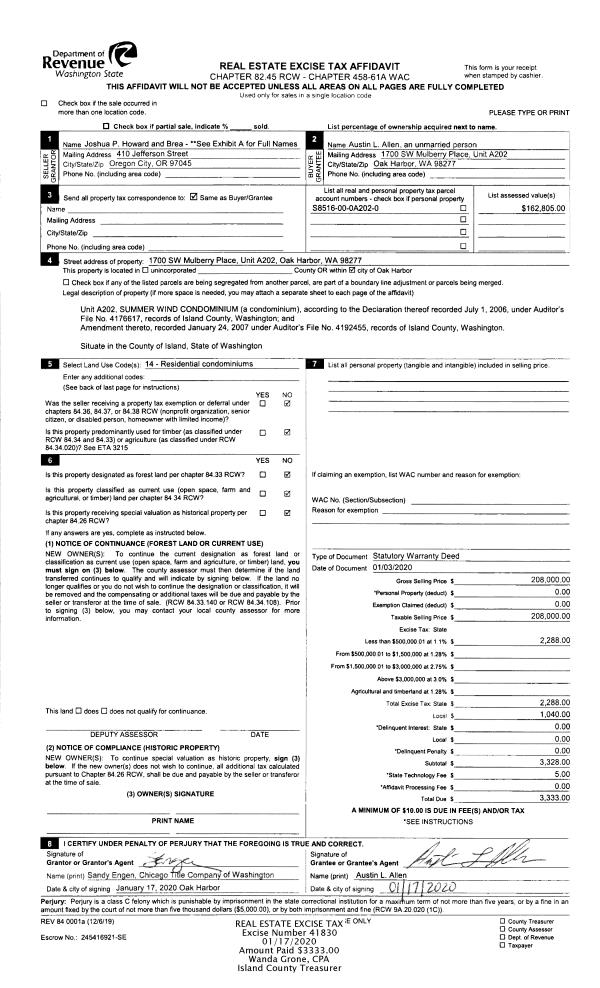 | 2 | 01/03/2020 | WD | Warranty Deed | HOWARD, JOSHUA P | ALLEN, AUSTIN L | | | $208,000.00 | 41830 | 4479519 |