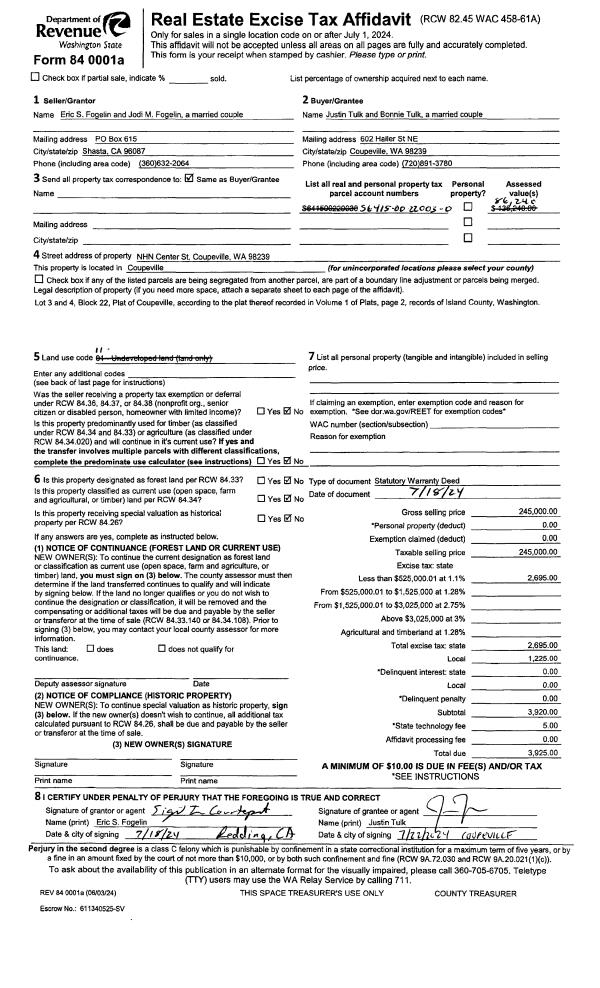 | 1 | 07/18/2024 | WD | Warranty Deed | FOGELIN, ERIC S | TULK, JUSTIN | | | $245,000.00 | 60729 | 4574994 |