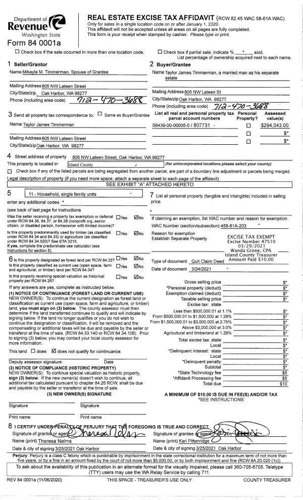 | 2 | 03/24/2021 | QCD | Quit Claim Deed | TIMMERMAN, MIKAYLA M | TIMMERMAN, TAYLOR JAMES | | | $0.00 | 47510 | 4514817 |