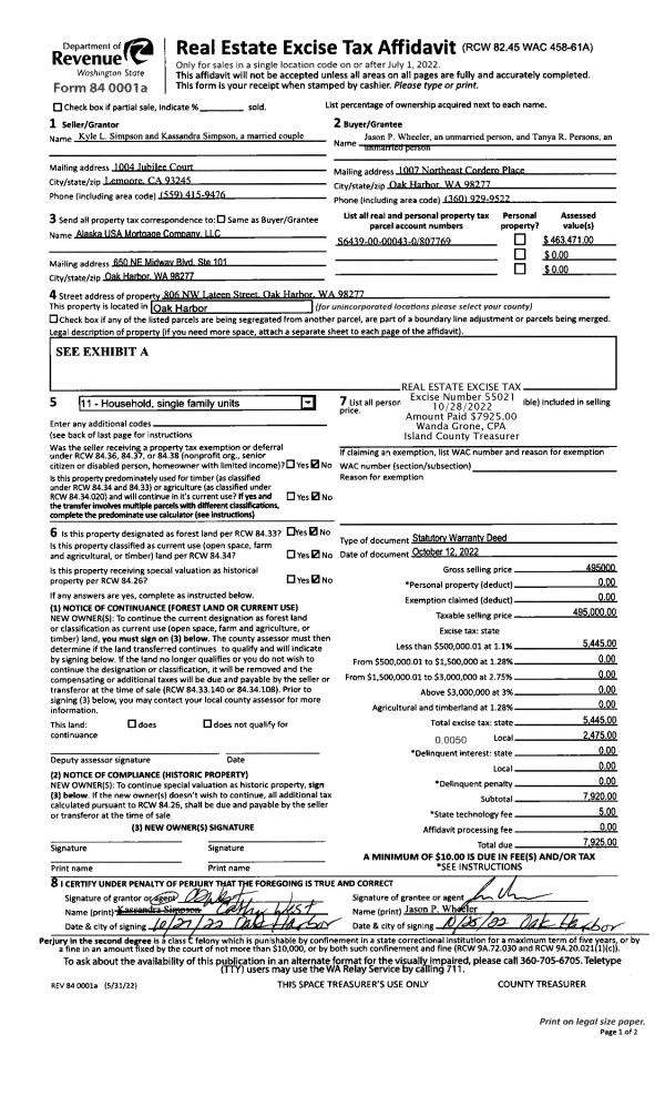 | 1 | 10/12/2022 | WD | Warranty Deed | SIMPSON, KYLE L. | WHEELER, JASON P. | | | $495,000.00 | 55021 | 4553169 |