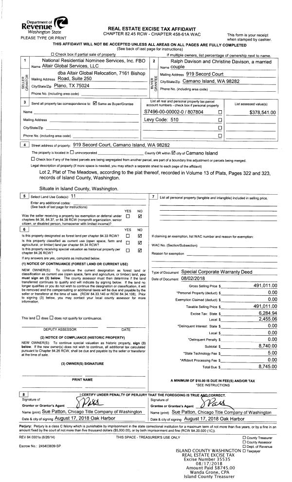 | 1 | 08/02/2018 | WD | Warranty Deed | NATIONAL RESIDENTIAL NOMINEE SERVICES, INC | DAVISON, RALPH | | | $491,011.00 | 35535 | 4450162 |