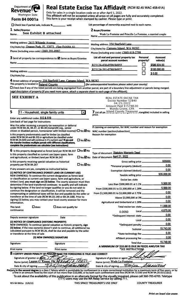 | Mailing Address: | 914 SECORD COURT CAMANO ISLAND, WA 98282 | % Ownership: | 100.0000000000% |