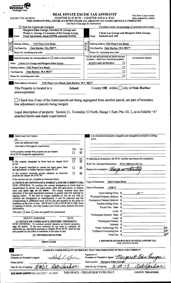 | Mailing Address: | 1691 SW MULBERRY PL UNIT F104 OAK HARBOR, WA 98277 | % Ownership: | 100.0000000000% |