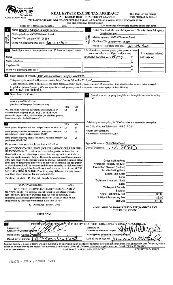 | 4 | 01/10/2020 | QCD | Quit Claim Deed | ADRAGNA, BRADFORD MICHAEL | ADRAGNA, BRADFORD MICHAEL | | | $0.00 | 41771 | 4479078 |