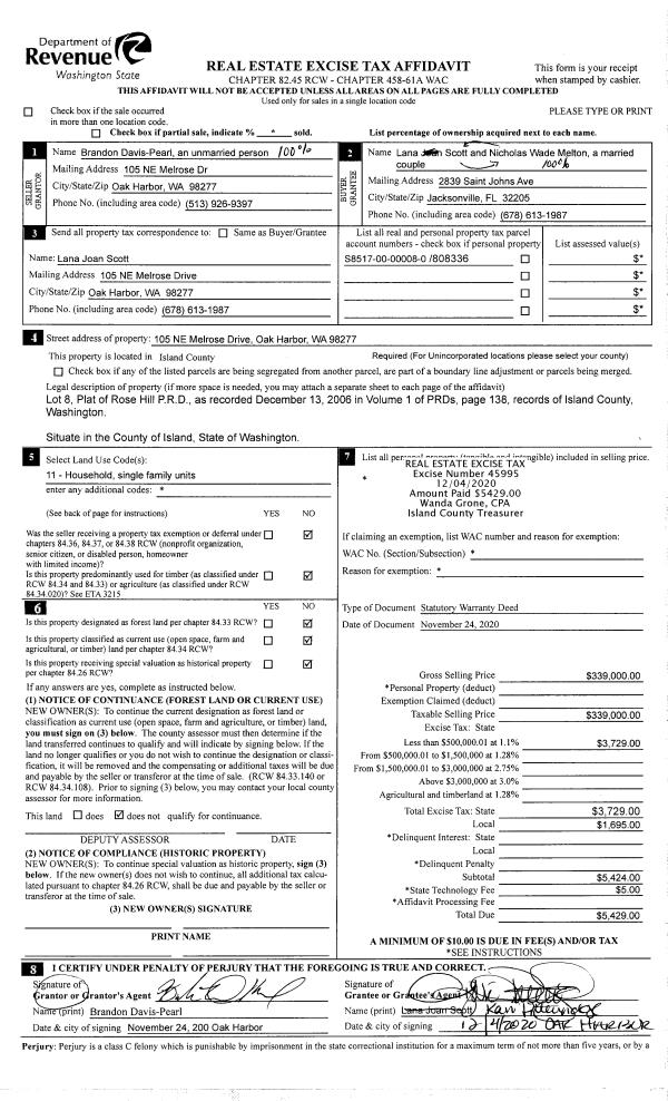 | 2 | 11/24/2020 | WD | Warranty Deed | DAVIS-PEARL, BRANDON | MELTON, NICHOLAS WADE | | | $339,000.00 | 45995 | 4504281 |