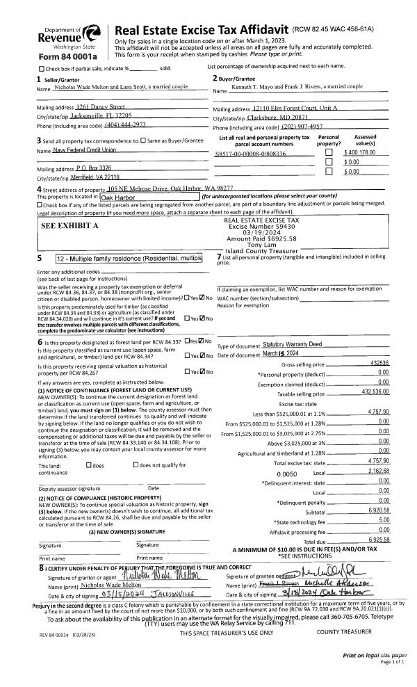 | 1 | 03/15/2024 | WD | Warranty Deed | MELTON, NICHOLAS WADE | MAYO, KENNETH T | | | $432,536.00 | 59430 | 4570367 |