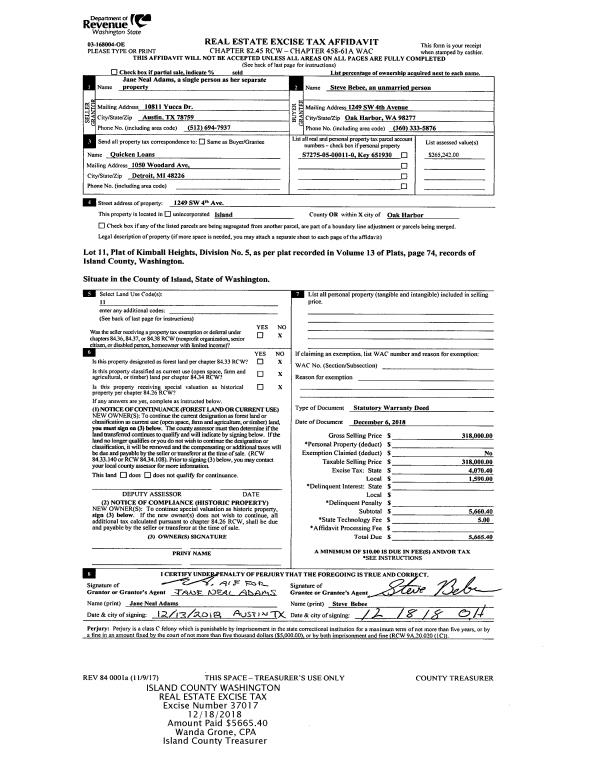 | 3 | 10/23/2018 | WD | Warranty Deed | DARNELL, GREGORY W | S. ALBERT CONSTRUCTION, LLC | | | $100,000.00 | 36412 | 4453946 |
