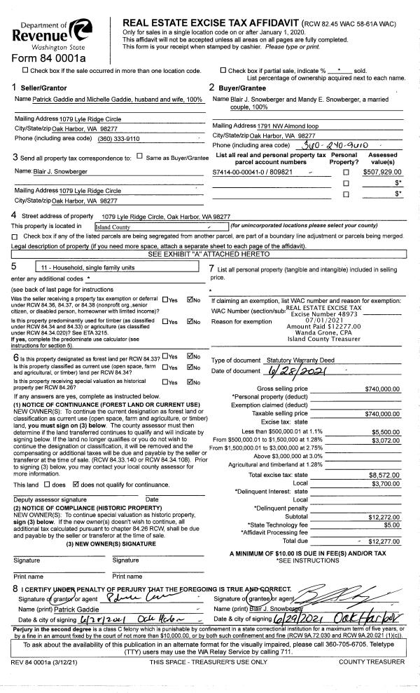 | 1 | 06/28/2021 | WD | Warranty Deed | GADDIE, PATRICK | SNOWBERGER, BLAIR J | | | $740,000.00 | 48973 | 4523295 |