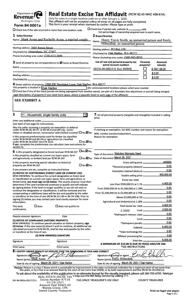 | Mailing Address: | EMILY HILBERDINK 2500 SW NAVIGATOR LP OAK HARBOR, WA 98277-9597 | % Ownership: | 100.0000000000% |