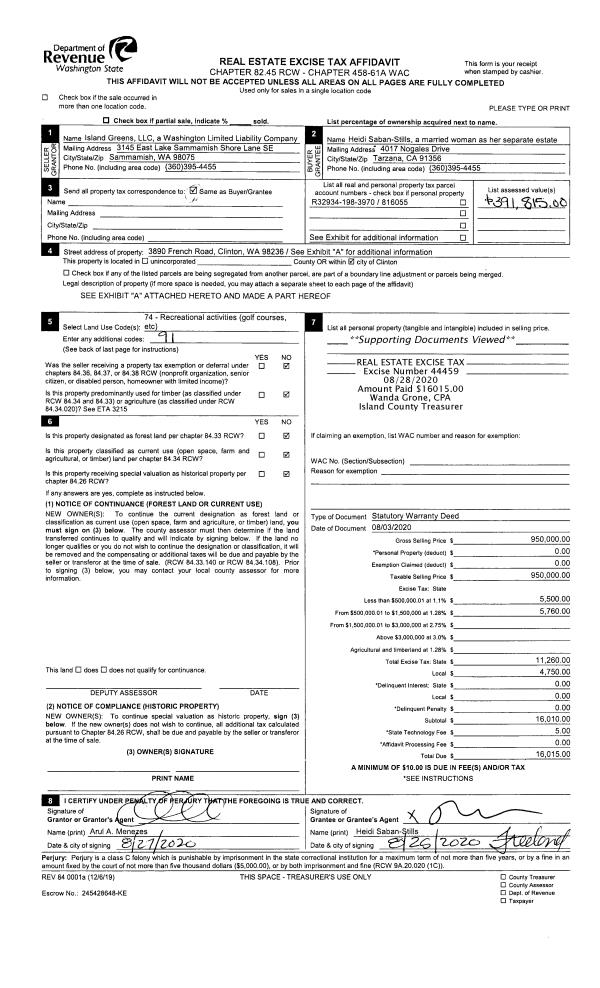 | 3 | 08/03/2020 | WD | Warranty Deed | ISLAND GREENS LLC | SABAN-STILLS, HEIDI | | | $950,000.00 | 44459 | 4495061 |