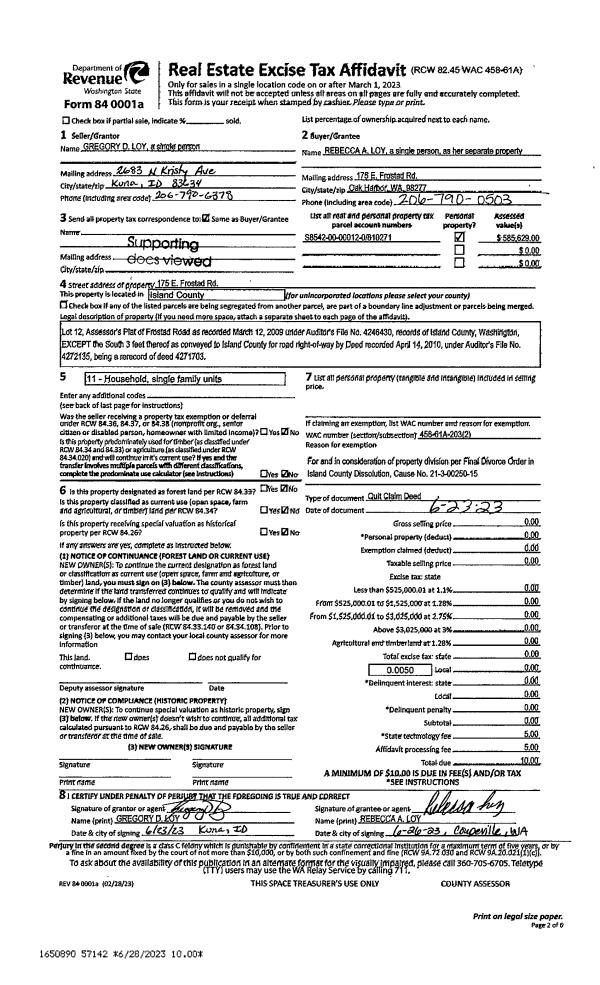 | 1 | 06/23/2023 | QCD | Quit Claim Deed | LOY, GREGORY D | LOY, REBECCA A | | | $0.00 | 57142 | 4561631 |