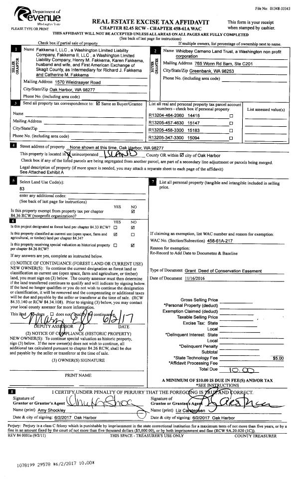 | 7 | 11/16/2016 | GRANTD | Grant Deed | FAKKEMA I LLC | WHIDBEY CAMANO LAND TRUST | | | $490,000.00 | 27079 | 4412213 |