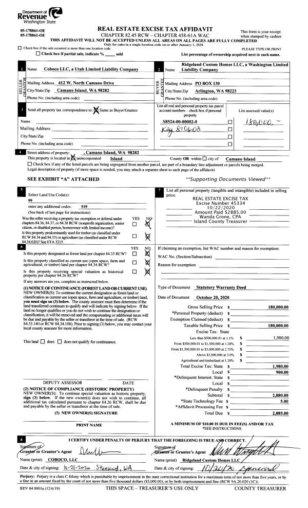 | 4 | 10/20/2020 | WD | Warranty Deed | COBOCO, LLC | RIDGELAND CUSTOM HOMES, LLC | | | $180,000.00 | 45334 | 4500151 |