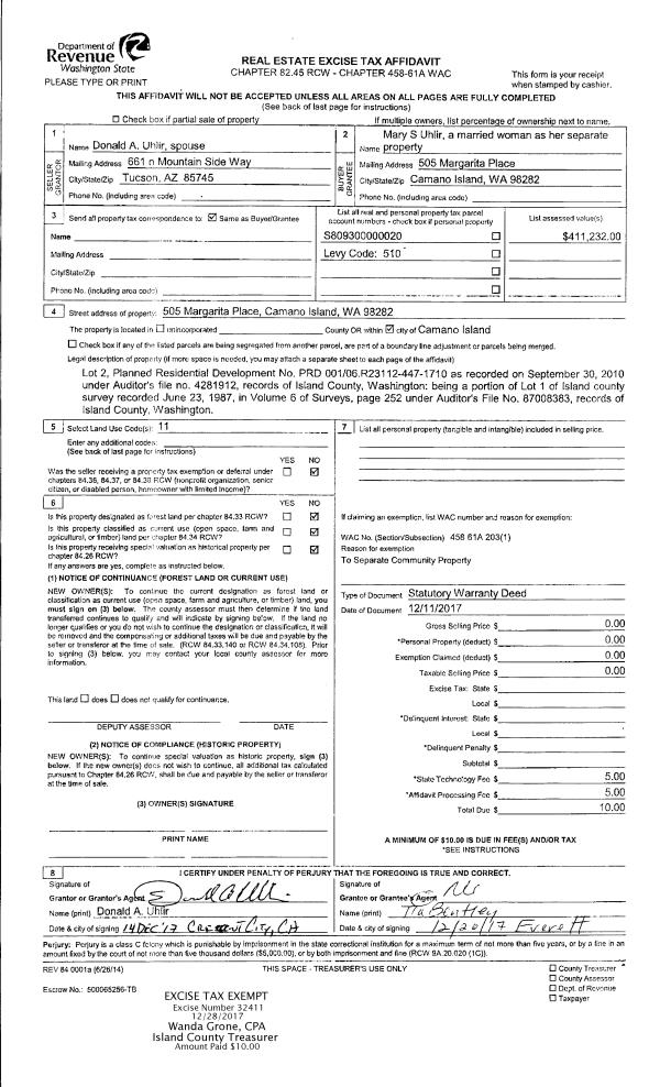 | 2 | 12/11/2017 | QCD | Quit Claim Deed | UHLIR, MARY S | UHLIR, MARY S | | | $0.00 | 32411 | 4436414 |