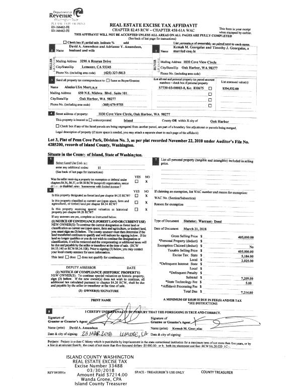 | Mailing Address: | TIMOTHY J GEORGALAS 1030 COVE VIEW CIRCLE OAK HARBOR, WA 98277 | % Ownership: | 100.0000000000% |