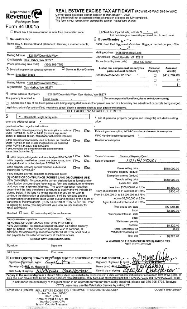 | 2 | 10/19/2021 | WD | Warranty Deed | HAWVER III, RAY A | BIGGS, VICKI JEAN | | | $518,000.00 | 50580 | 4531945 |