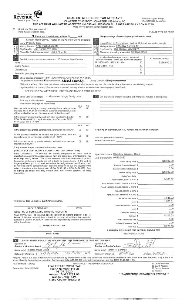 | 1 | 07/20/2020 | WD | Warranty Deed | GROVE TTEE, KJIRSTEN MARIE | SCHMALL, BRANT H | | | $326,002.00 | 44150 | 4493318 |