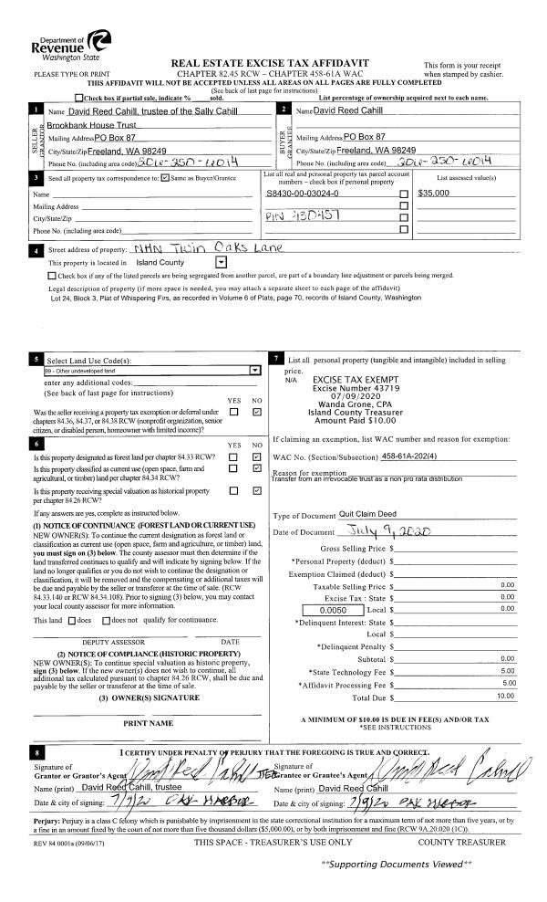 | Mailing Address: | 2947 STRAWBERRY POINT OAK HARBOR, WA 98277 | % Ownership: | 100.0000000000% |