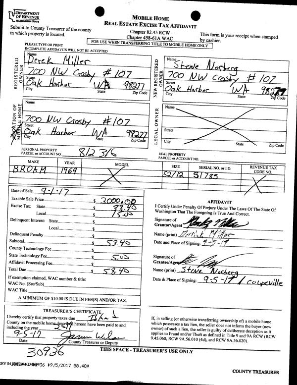 | 3 | 09/01/2017 | MANHOME | Manufactured Home | MILLER, DEREK | NORBERG, STEVE | | | $3,000.00 | 30936 | |