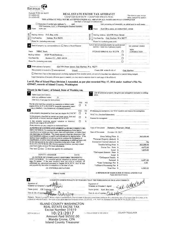| 3 | 10/19/2017 | WD | Warranty Deed | GB VENTURES L L C | BRAGANZA, KARL | | | $365,000.00 | 31619 | 4432637 |