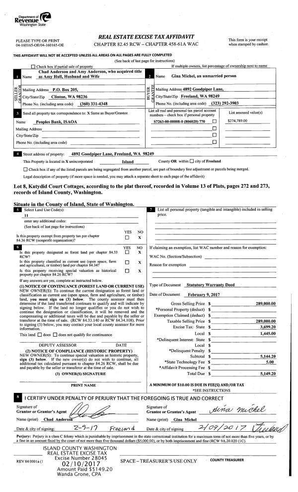 | Mailing Address: | MACKENZIE ELIZABETH NEAL 1325 GREAT HORNED OWL LN OAK HARBOR, WA 98277 | % Ownership: | 100.0000000000% |