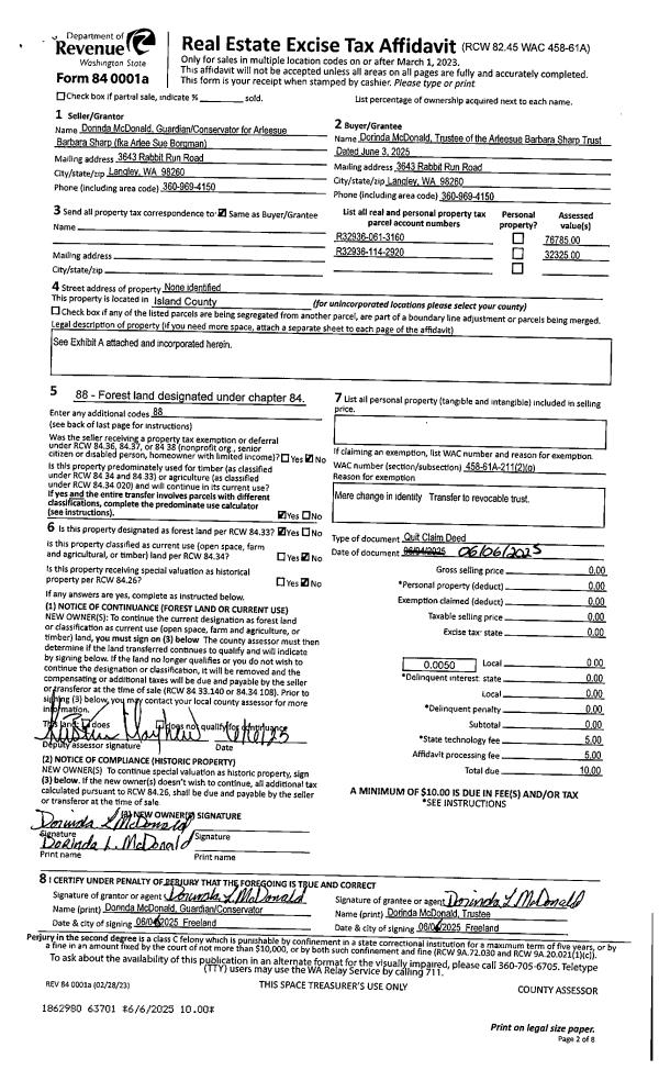 | 1 | 06/06/2025 | QCD | Quit Claim Deed | BORGMAN, ARLEE SUE | MCDONALD TTEE, DORINDA | | | $0.00 | 63701 | 4586668 |