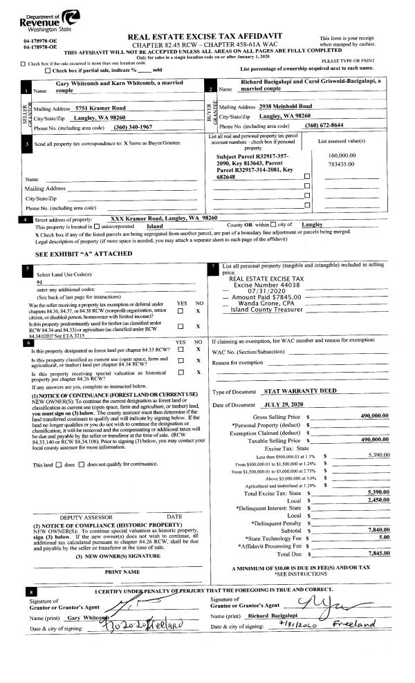 | 2 | 07/29/2020 | WD | Warranty Deed | WHITCOMB, GARY | BACIGALUPI, RICHARD | | | $490,000.00 | 44038 | 4492686 |